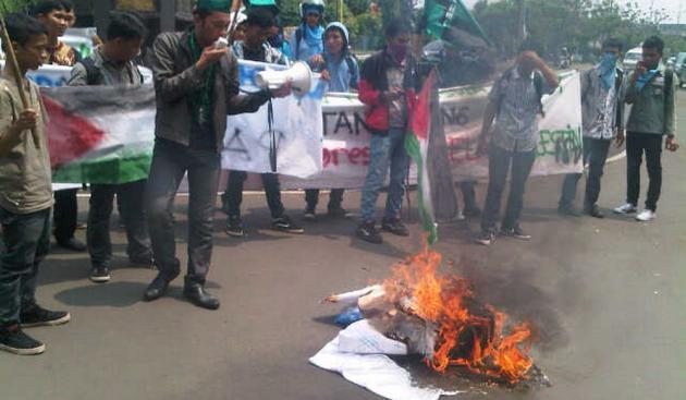 Awalnya, para mahasiswa ini melakukan long march dari Universitas Muhammadiah Tangerang (UMT) hingga Bundaran Akhlakul Karimah di Jalan Veteran, Kota Tangerang, Jumat (23/11). Kemudian mereka berorasi sambil membakar ban serta bendera Israel.