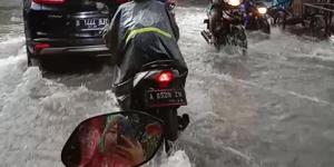 TANGERANGNEWS.com-Hujan yang mengguyur sejumlah wilayah di Kabupaten Tangerang, Jumat (24/1/2020) sejak pagi membuat ruas jalan