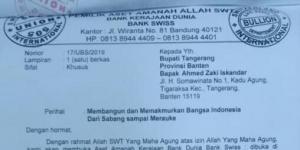 Viral! Kelompok Mengaku Bank Kerajaan Dunia Surati Bupati Tangerang