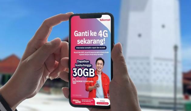 Telkomsel memberikan penawaran tambahan kuota 4G hingga 30GB dengan tarif Rp 10 bagi pelanggan terpilih. Informasi lebih lanjut mengenai program Tukar Kartu ke 4G bisa diakses di tsel.me/tukarkartu4g.