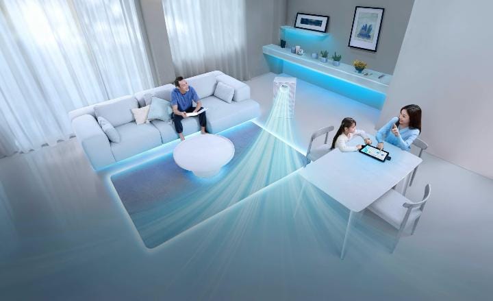 Tersedia tiga mode aliran udara, yaitu Front Mode dengan jangkauan hingga 10 meter, Wide Mode untuk distribusi merata di area luas, serta Haze Mode untuk kondisi polusi udara tinggi.